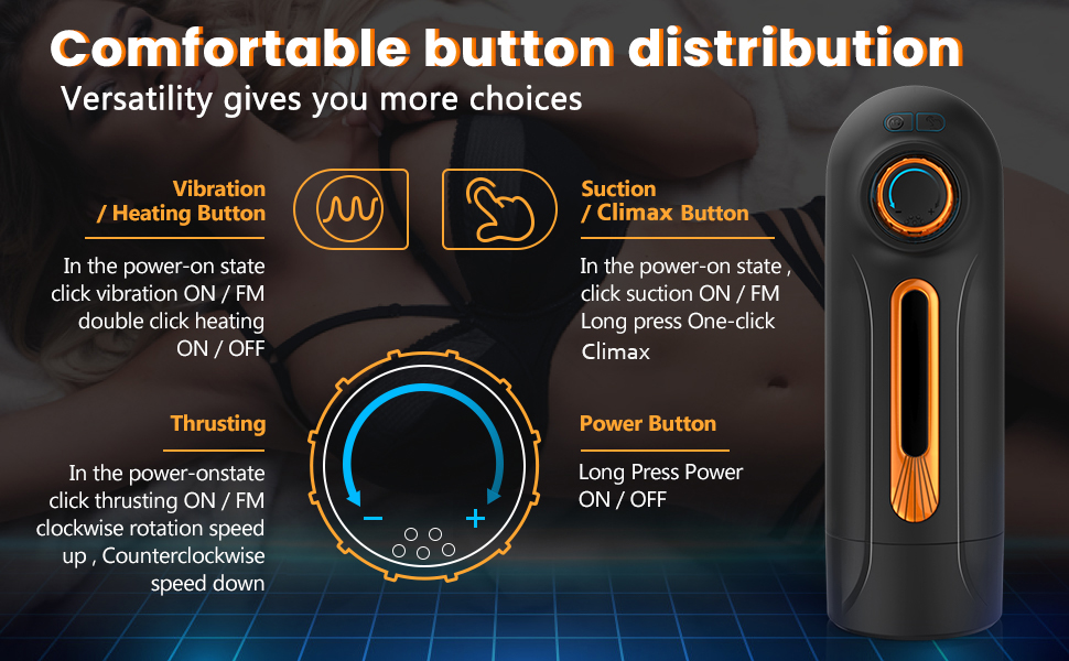 ★ 【10 Freely Adjustable Thrusting Function】As an ultimate masturbator, this masturbator not only features 4 Sucking and 10 Vibrations, but also a 10 freely Adjustable Thrusting, a 40 ℃ Heating function, and a One-touch Climax function. The powerful motor has long been 10 High-Speed Powerful Thrusting functions.